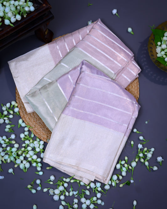 Beige Gold Kanchi Tissue Saree with Petite Point Border