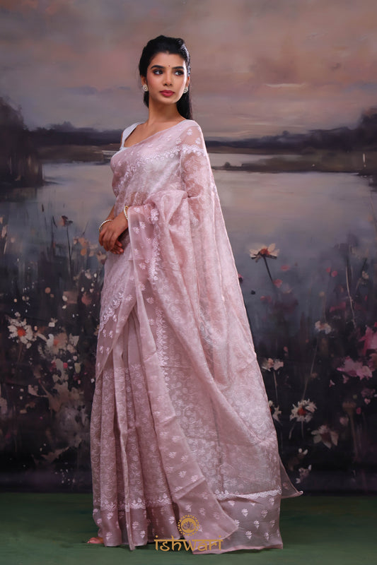 Pink Ombre Organza Saree with Thread Embroidery and Embellished Work Blouse – House of Ishwari