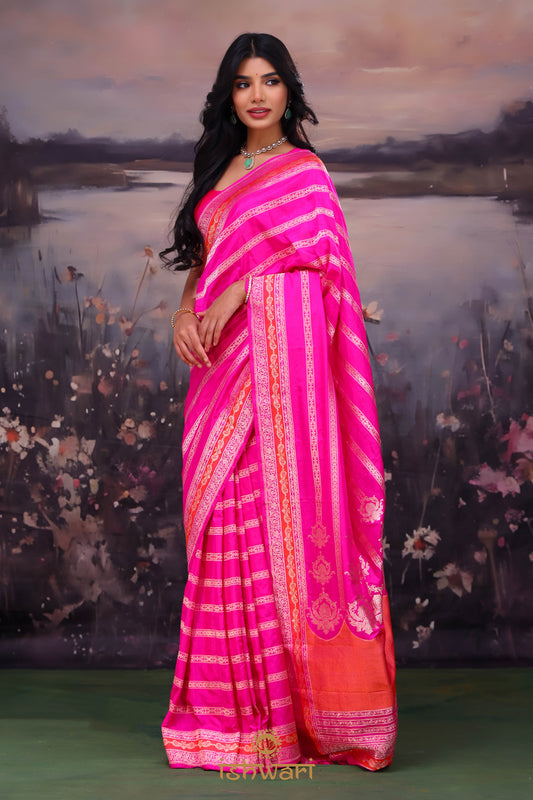 Sold outHot Pink Stripes Banarasi Silk Saree