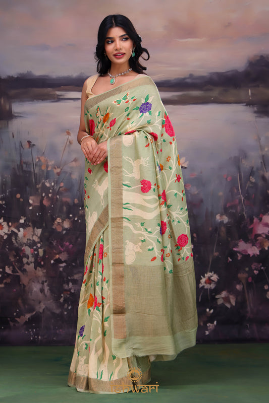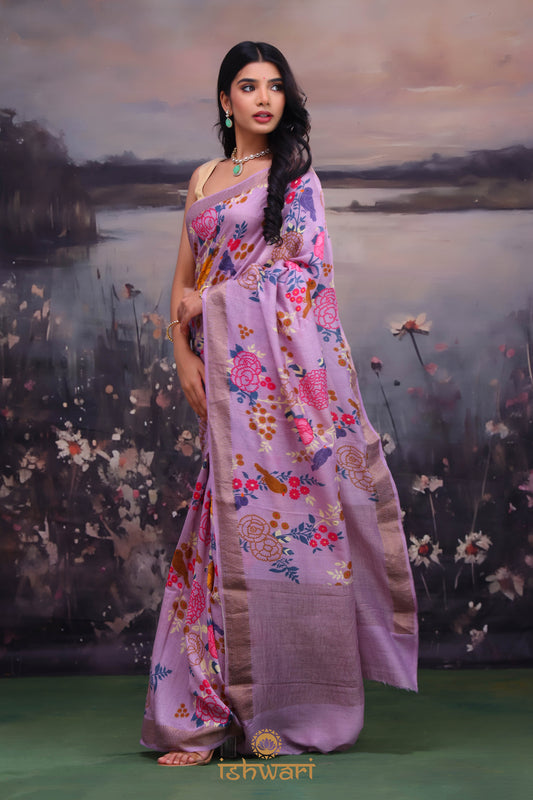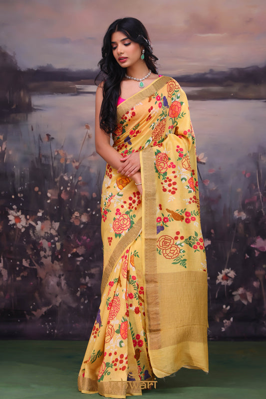Hunyadi Yellow Printed Handloom Moonga Saree