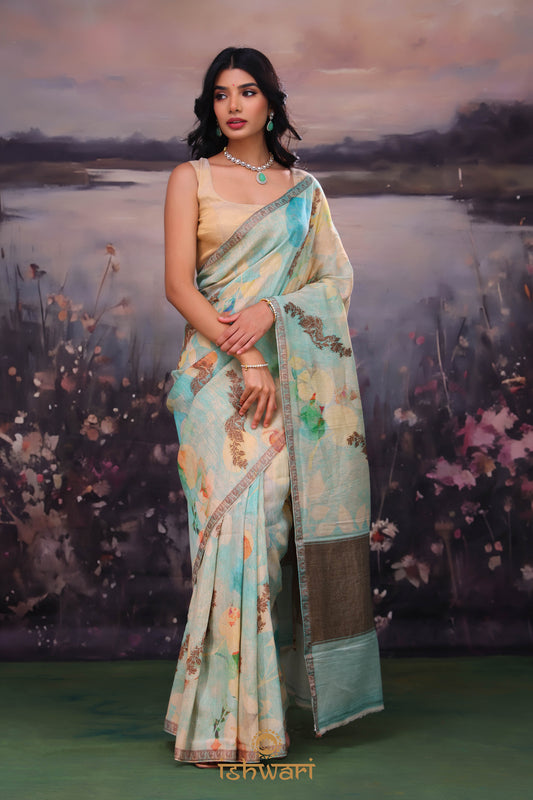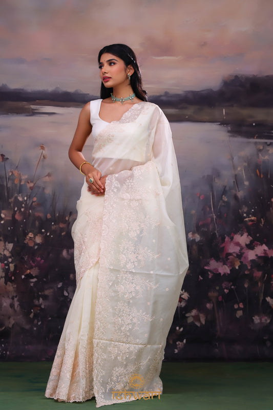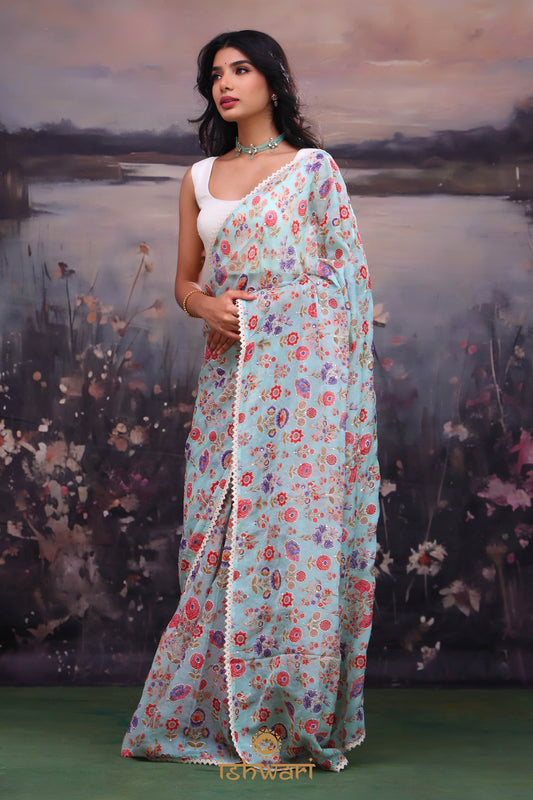 Sky Blue Floral Glass Organza with Chikankari Blouse
