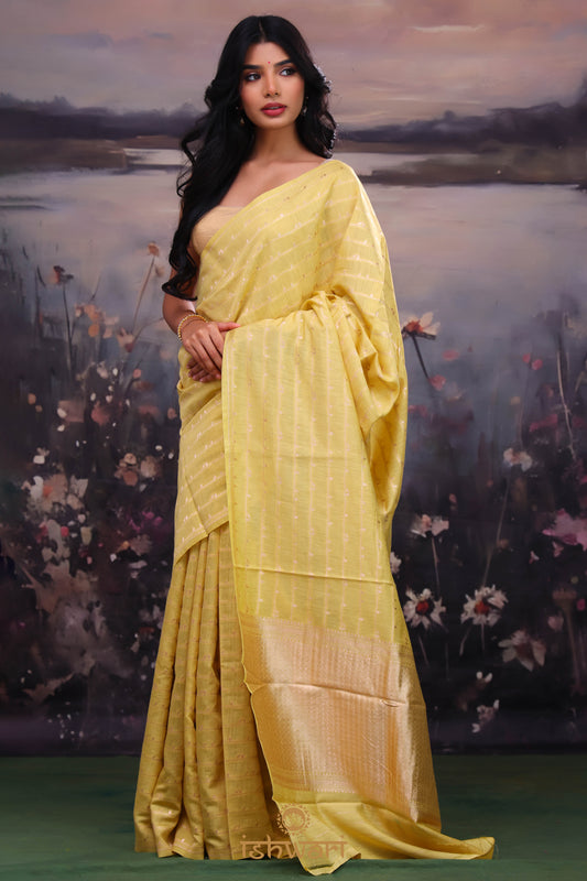 Laguna Yellow Bird Stripe Handloom Tussar Saree