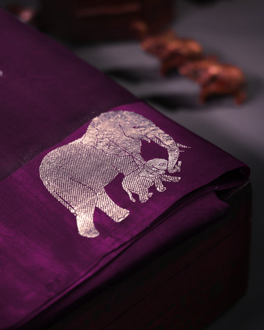 Palatinate Purple Banarasi Goergette Satin Saree with Elephant Border