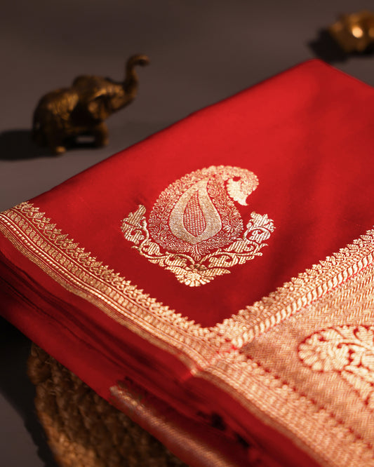 Perisan Red Banarasi Katan Satin Saree