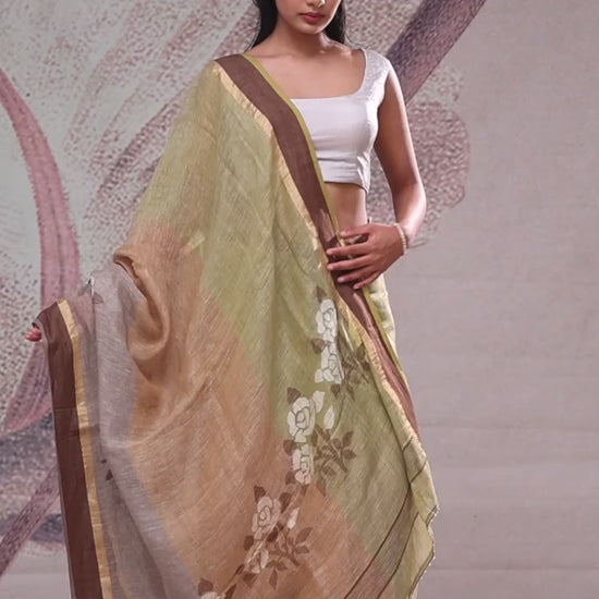 This Brown Linen Jamdani Saree showcases intricate traditional weaving on a lightweight base. The detailed motifs demonstrate exceptional craftsmanship throughout. Comes with a matching blouse piece. Perfect for special occasions and cultural events.