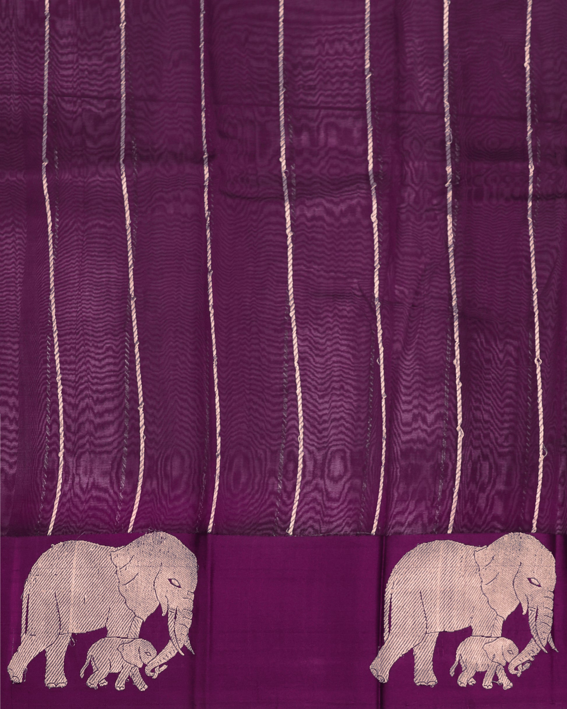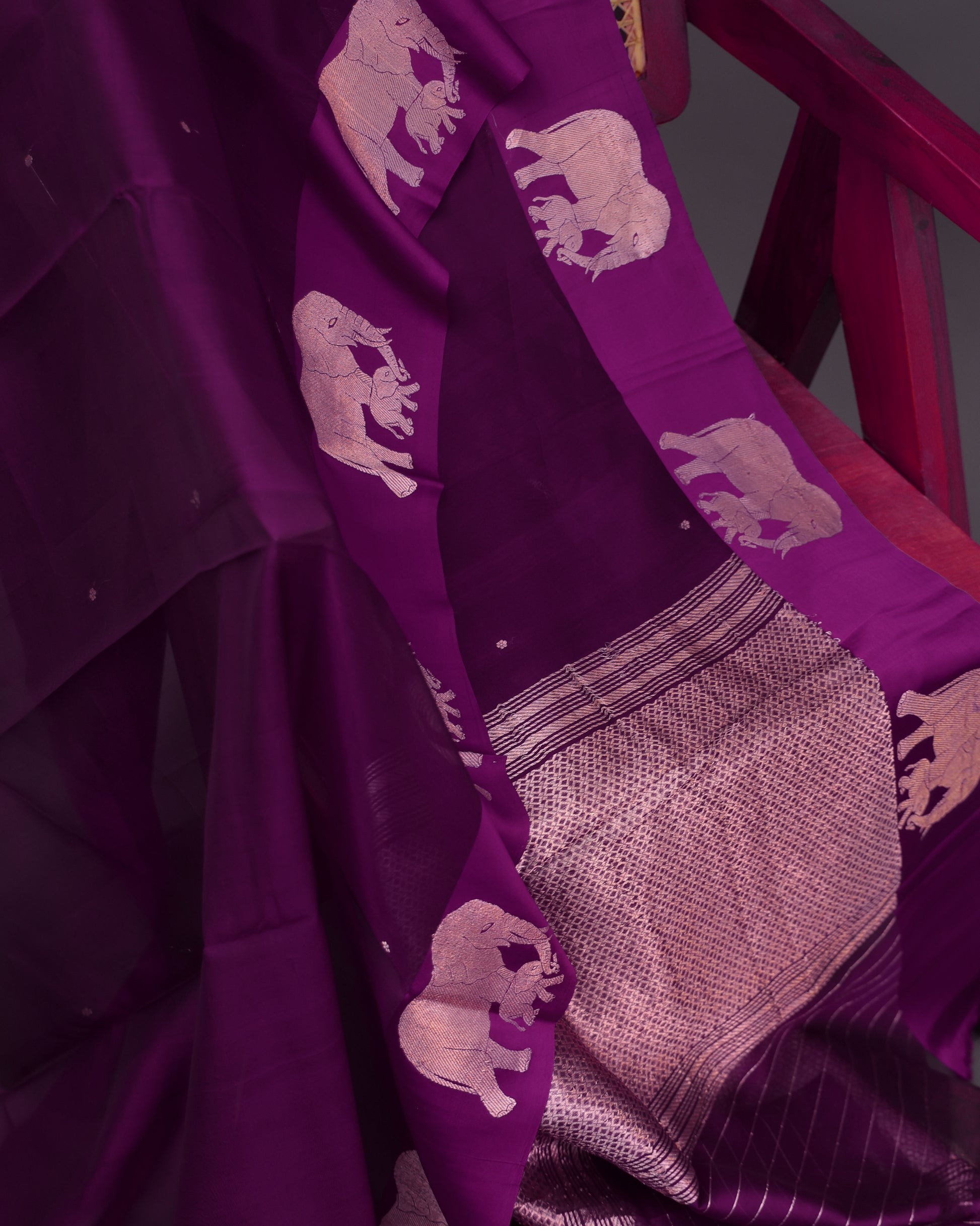 Palatinate Purple Banarasi Goergette Satin Saree with Elephant Border