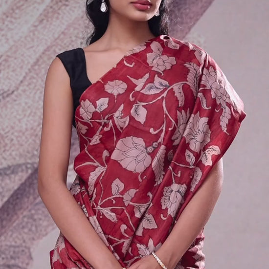 Persian Red Handpainted Kalamkari Silk Saree
