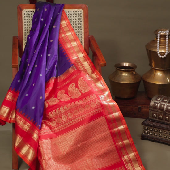 Purple Gadwal Silk Saree with Red Zari spacing Border