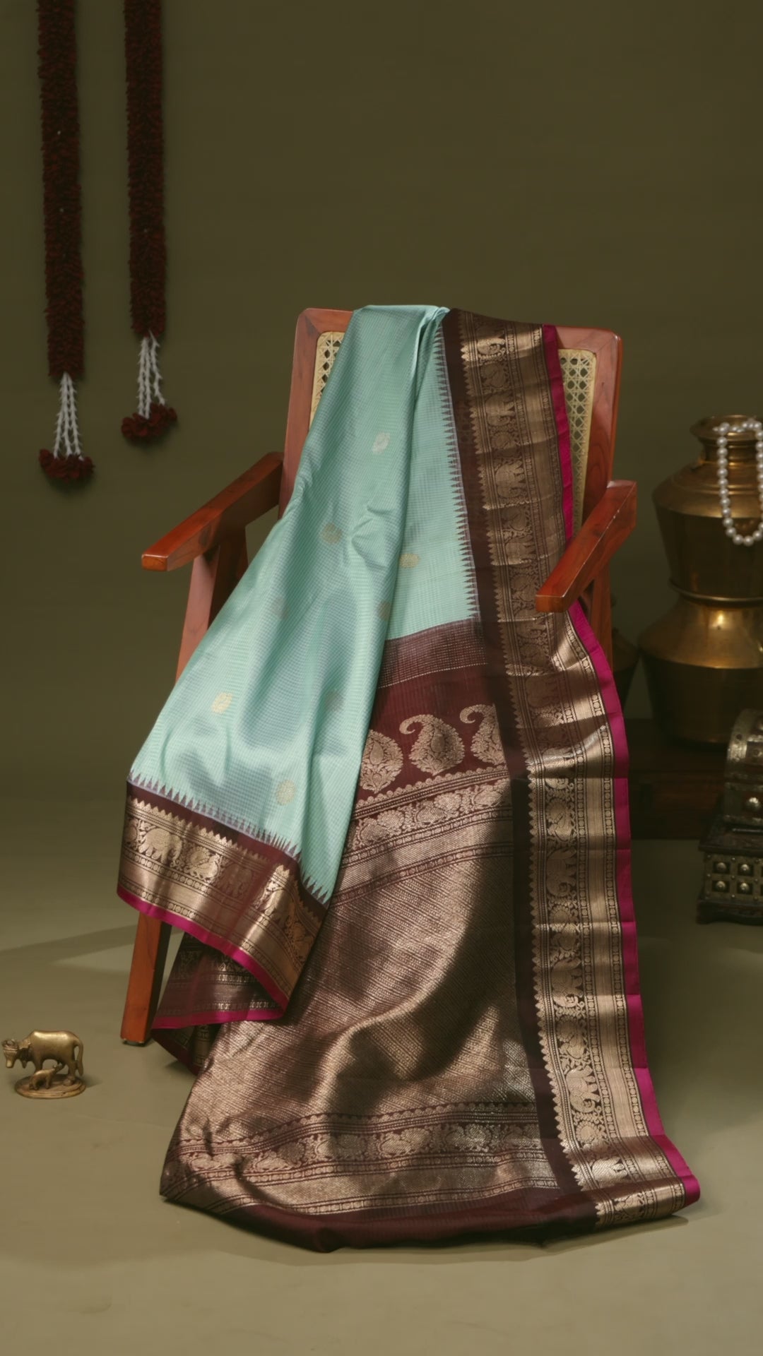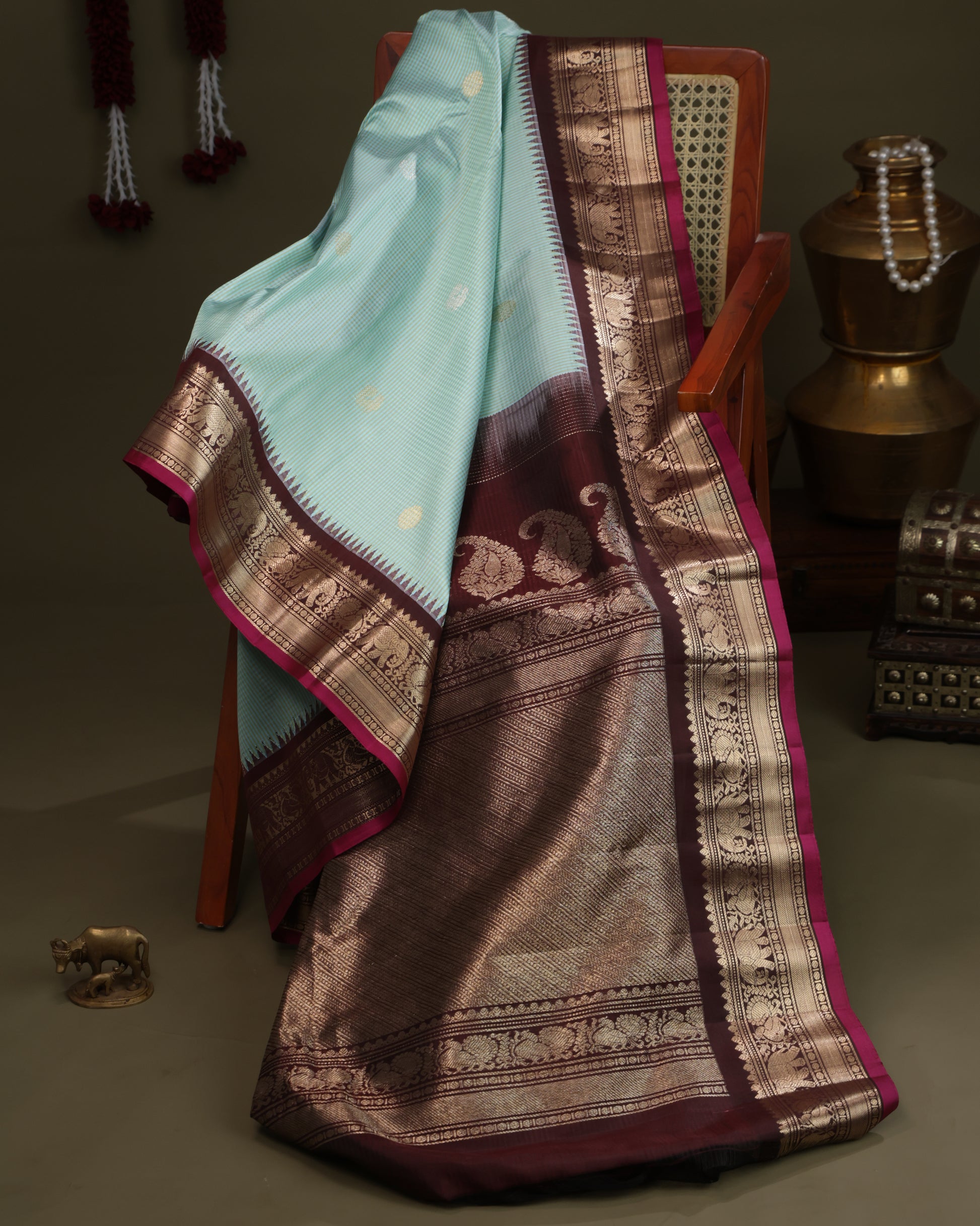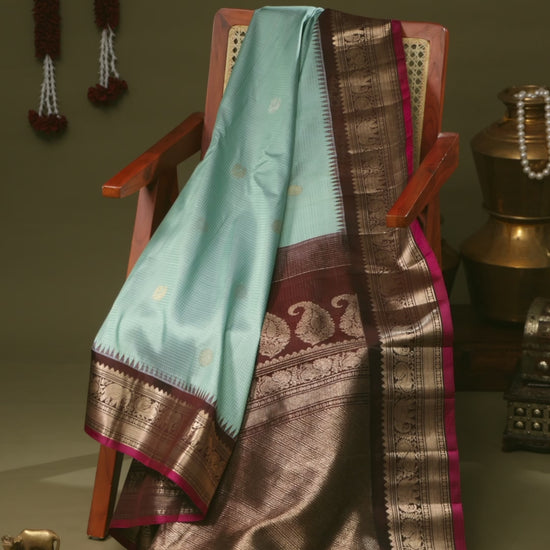 Sea Green Gadwal Silk Saree with Coffee Brown Zari Border